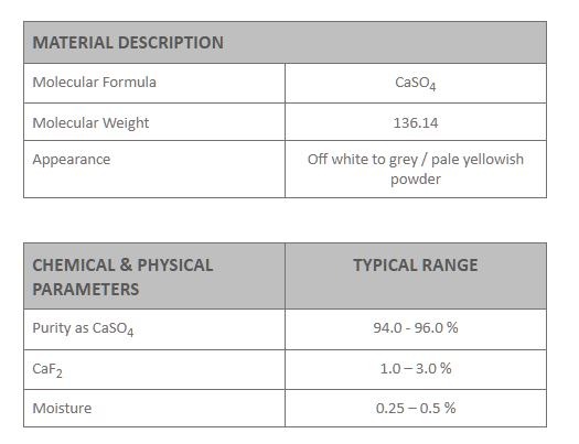 Is the by-product obtained during the manufacturing of Anhydrous Hydrofluoric acid with consistent quality, It is used for various application like cement manufacturing as a retardant, construction material, plaster board, soil preparation, medical use, and others.